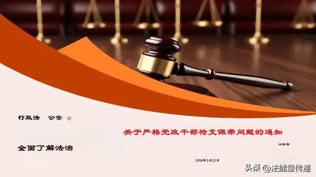 通知党政公安部严格佩戴枪支(1986年1月23日)各省、自治区、直辖市公安厅局:近年来,党政干部佩戴枪支的范围越来越广,数量有所增加。有些地区,配枪被视为一种待遇,分布范围扩大;在一些地区,公安部门为党政高级官员提供专业枪支;在某些情况下,少数高级干部还通过关系积极拉拢枪支。去年,河北省公安厅在省委、省政府的大力支持下,对党政高级干部佩戴枪支进行清理,查获不应放行的枪支1200余支。根据对其他省份的调查和自治地区不应该携带枪支但也有配件的人数。当前,我国政局稳定,社会保障总体稳定。党政干部没有必要携带枪支自卫。有些由于储存不当而造成许多问题。例如,河北省XX市供电局副局长家里就藏有“五四”式手枪和10发子弹。犯罪分子于去年一月偷走了它们。 5月份,河北省XX县,犯罪分子在被公安人员追捕时,用枪杀死了县公安局政委。 2月10日,山西×矿厂党委书记××的“6月4”式手枪被儿子夺走,将女友××打死。去年春节,河南省XX地委书记××回家看望时为了对付亲戚,他把自己的 6 月 4 日式手枪放在枕头下。一名儿童将其取出并开火,导致一名 5 岁儿童死亡。类似的情况每年都会发生,不仅造成一些不应有的损失,而且给群众造成很多不良影响。近日,中央高层就部分地方党政干部过度配枪问题作出批示,指出党政干部配枪必须严格按照《中华人民共和国枪支管理若干意见》执行。不该发放的不能发放,已发放但不符合规定或者不符合要求的必须退回。为贯彻落实中央领导指示精神,现通知如下: (一)根据《中华人民共和国消防管理若干意见》的规定,《条例》规定,党政负责人佩戴枪支的范围仅限于边防区、海防区和省、自治区人民政府规定佩戴枪支的边防区、海防区。所谓边防海防区是指少数划定明确的边境海防区;偏远地区是指交通有限、情况复杂的边远边远地区。负责边防、海防、偏远地区的党政官员佩戴的枪支也应当是结合本地实际,结合工作需要严格控制。其他地区党政领导干部不配配枪,对某些地区违反枪支管理规定、扩大配枪范围的,要立即报告省、自治区人民政府予以纠正。s,所有发放的枪支都将被退回。 。所有属于 pagswear 范围内的枪支和弹药都必须进行登记并颁发枪支许可证;对于不属于佩戴范围的,由有关部门下发的或者个人通过各种渠道要求的,将限期退回。退休人员、离休干部(含公安、政法部门离退休人员、离退休干部)原配带的枪支,必须无条件归还。经批准属于个人的枪支,必须交当地公安机关或者所在单位保卫部门保管。这项工作涉及广泛的领域。要向省、市、自治区委、政府报告,争取各级党委、政府支持,要求党政委负责同志向有关部门说明真相。有关干部耐心细致地做好思想工作,动员他们自愿归还枪支。逾期未提交的,将按照违反《中华人民共和国枪支管理条例》的规定予以处罚。 。对不该发枪的党政高级干部,不应该发枪;不允许我们用枪去讨好、搞不正之风。今后,凡是违反规定,使用枪支谋取利益的,都将依法依纪处理。请各地区清理整顿情况及时向公安部报告。中国系列法条·治安管理(公安)43:注重党政干部严格佩戴枪支#行政法#